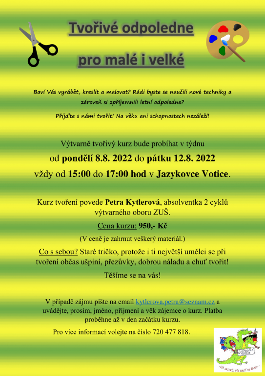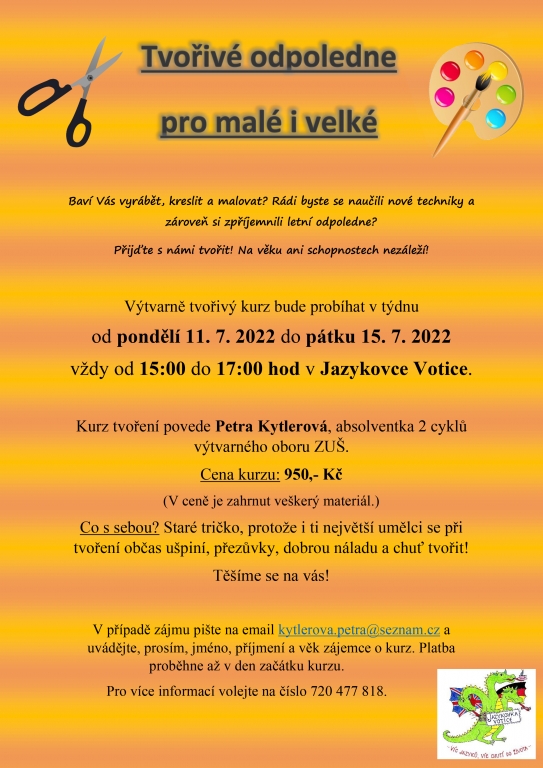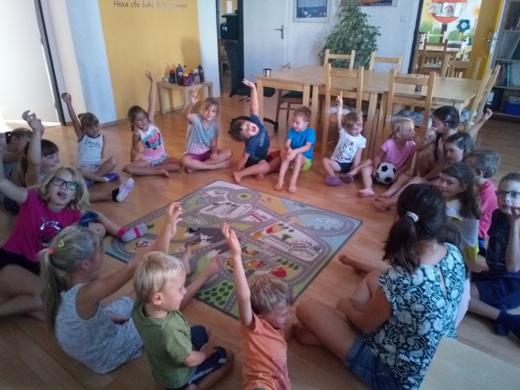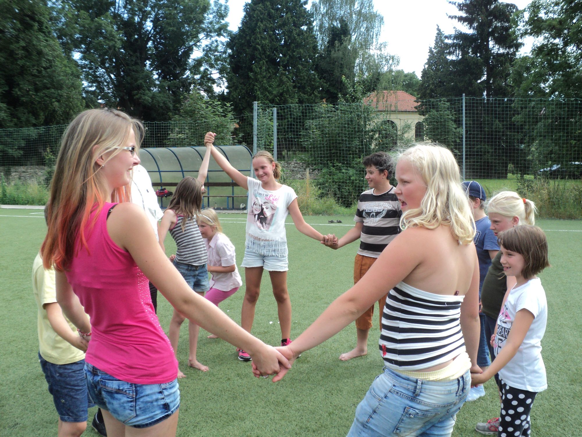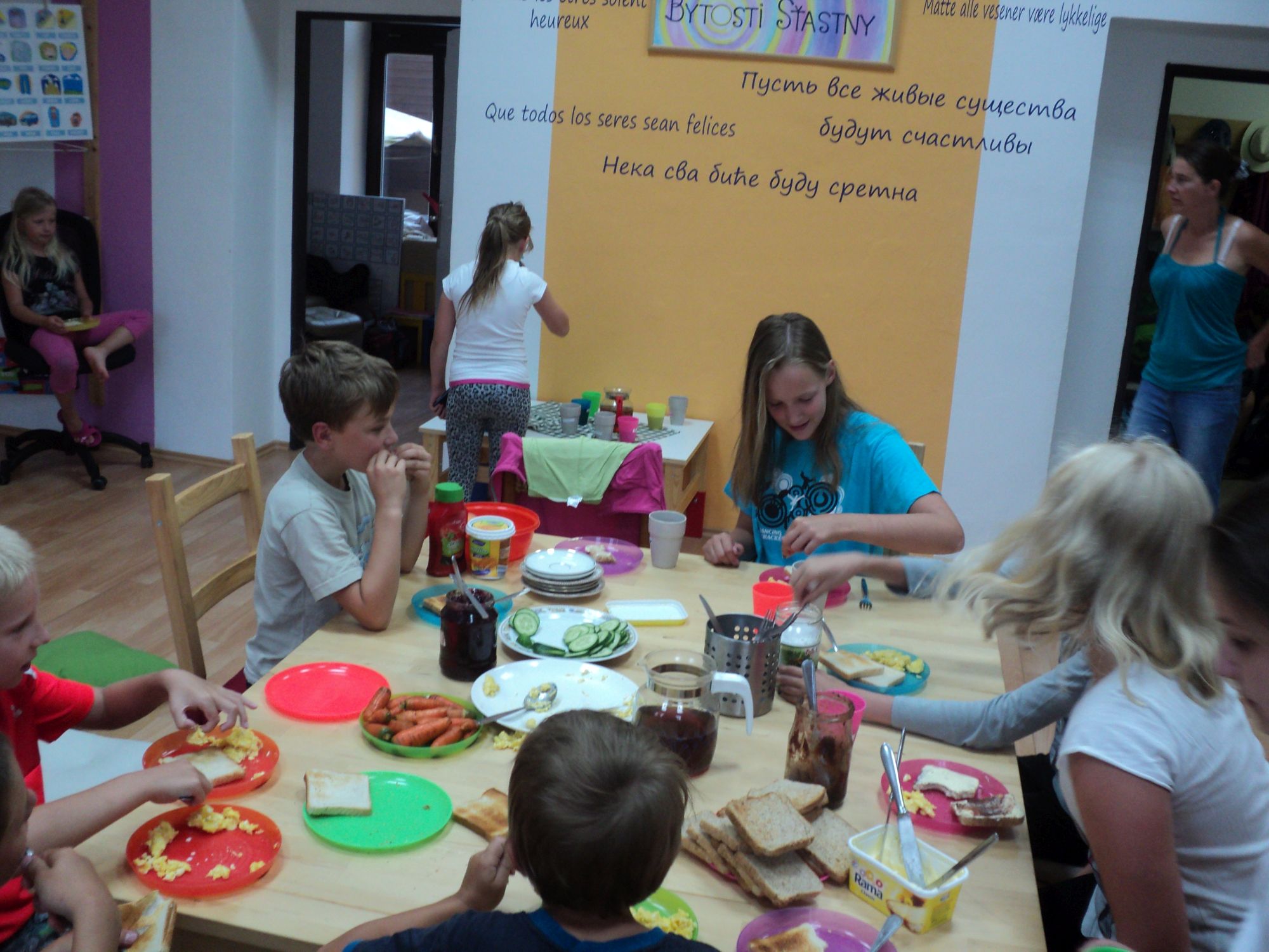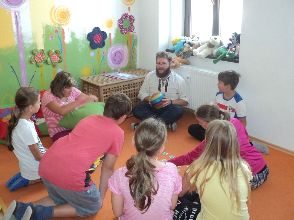 Nabízíme také letní příměstské tábory pro děti od 4 do 15 let s interaktivní výukou angličtiny komunikativní metodou pomocí modelových situací a her.