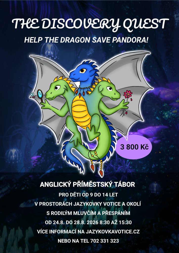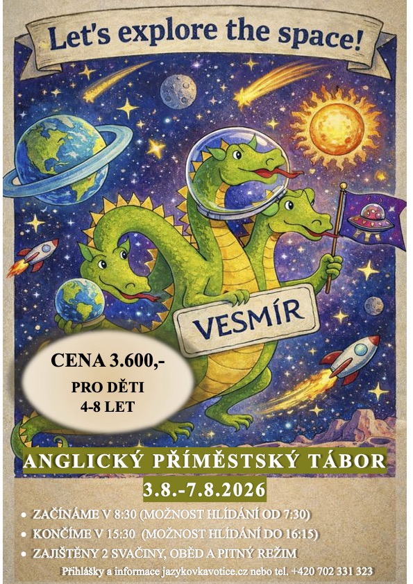 Tento tábor probíhá v prostorách Jazykovky Votice a za příznivého počasí venku, pod vedením kvalifikovaných lektorů anglického jazyka a rodilého mluvčího, od 8:30 do 15:30. Děti budou rozděleny do dvou skupin podle svých znalostí angličtiny. Výuka probíhá hravou, komunikativní formou. Jedenkrát proběhne táborák, noční hra a přespání v Jazykovce. Cena zahrnuje výukové materiály, 2 svačiny, teplý oběd a pitný režim.